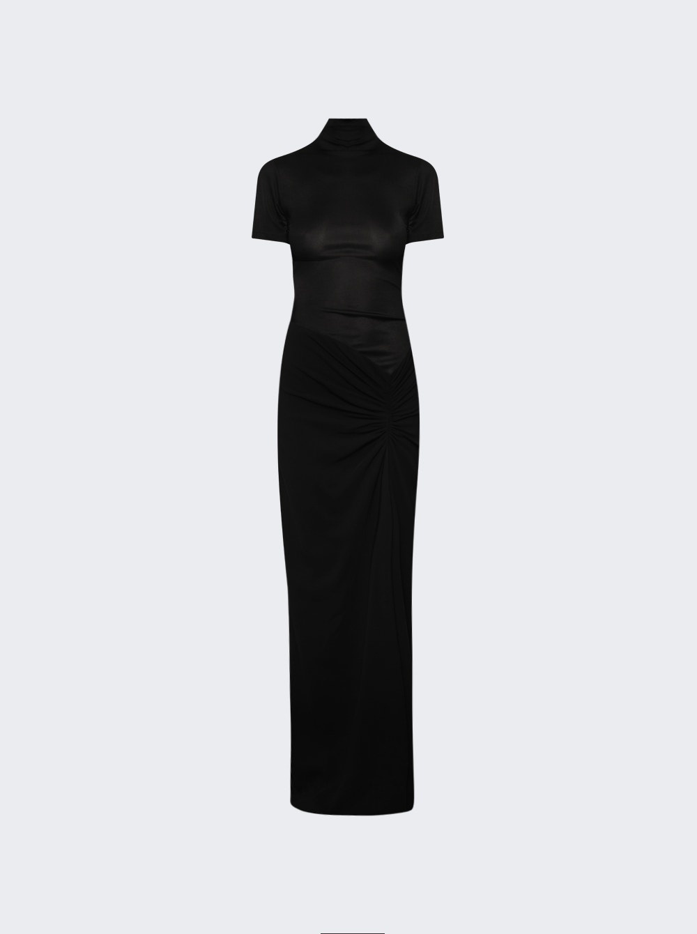 Details - Slim fit - Short sleeve - Sheer - High neck - Maxi length - Invisible back zip closure - Centre front ruching - Care according to label - Material: 97% VISCOSE 3% SPANDEX, 95% VISCOSE 5% ELASTANE - Model is 5'9"/175cm and is wearing a size AU8 Brand Style: 24013264 Designer/Brand: CHRISTOPHER ESBER