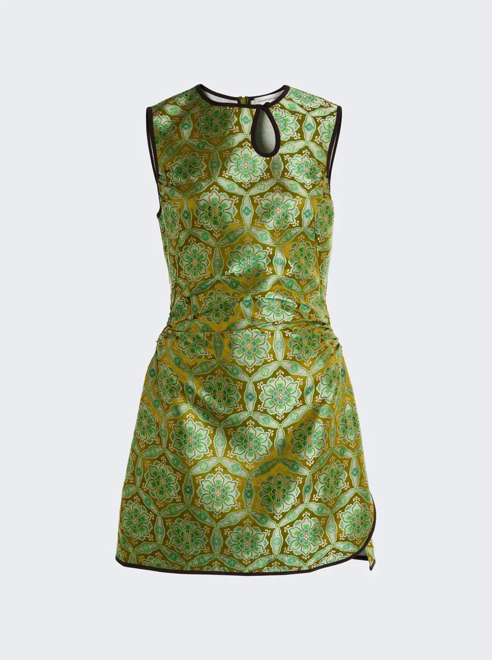 Details - Structured mini - in silk-blend brocade - Loophole cut-out at neckline - Fitted silhouette with a softly sculpted skirt - Lustrous texture - Intricate Palmira pattern - Zip closure at back - Main Material: 70% Viscose, 30% Silk; Lining: 100% Silk Vendor Color Code: Brand Style: 25043400 Designer/Brand: CHRISTOPHER ESBER
