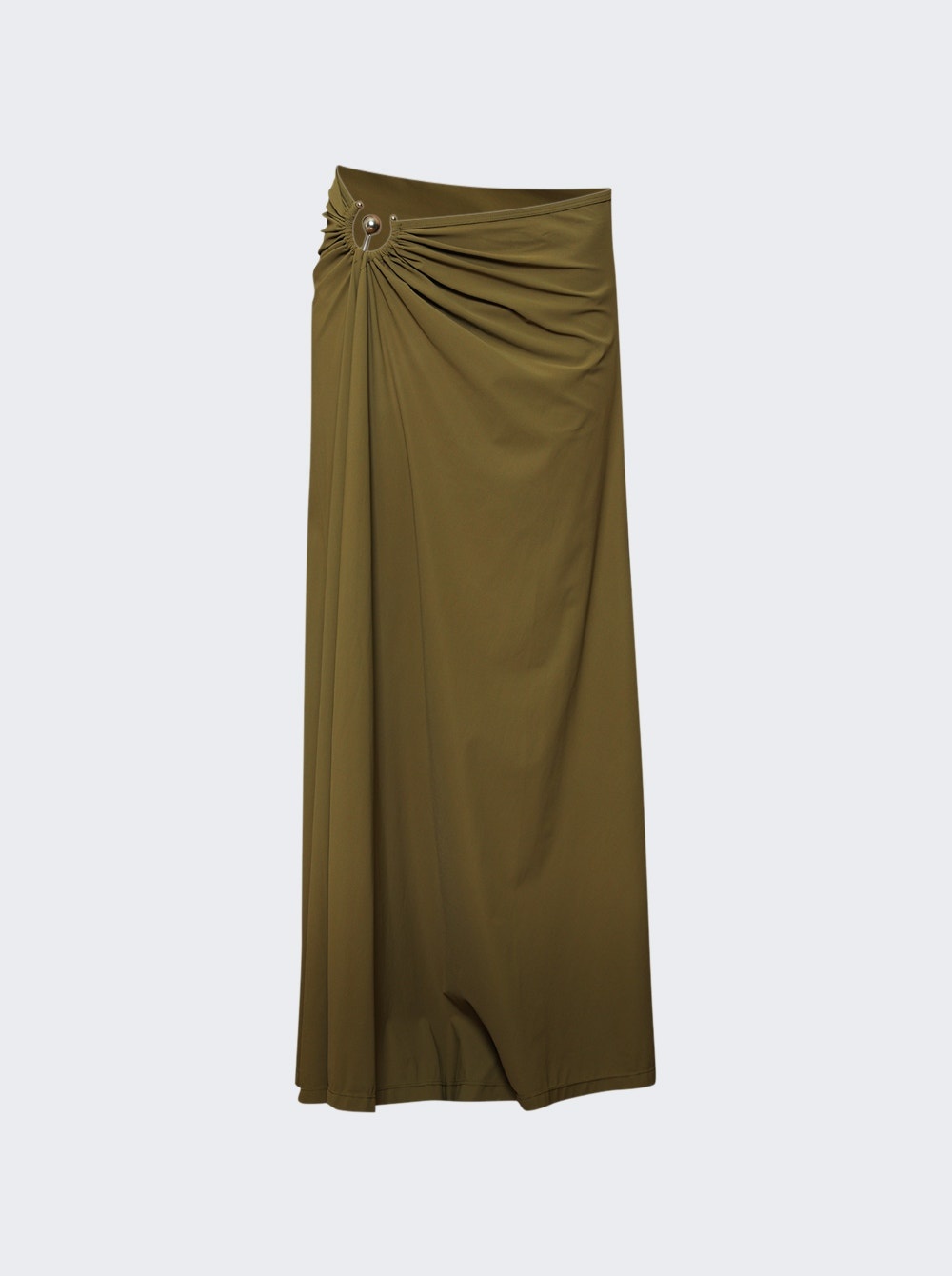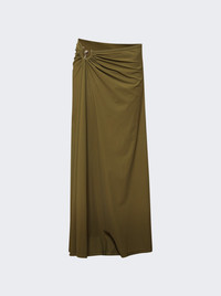 Details - Regular fit - Signature brass orb hardware - A line silhouette - Open split front - Ruched design - Maxi length - Care according to label - Material: 72% Polyamide, 28% Elastane - Model is 5'9"/175cm and is wearing a size AU8 Brand Style: 24047067 Designer/Brand: CHRISTOPHER ESBER