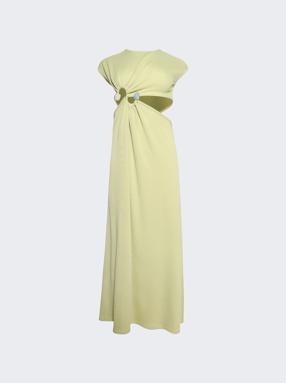 Details - Fitted silhouette - Sculptural concave hardware insert - Stone capped s-buckle hardware - Cut out detailing - Sleeveless bodice - High round neckline - A-line maxi silhouette - Care according to label - Material: 96% Polyester, 4% Spandex - Model is 5'9"/175cm and is wearing a size US4 Brand Style: 25013498 Designer/Brand: CHRISTOPHER ESBER