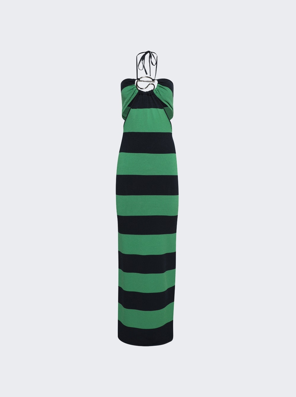Details - Fitted design - Maxi length - Halter neck - Spaghetti straps - Knitted design - Cut out design - Silver tone C shape jewelry - Care according to label - Material: 100% Viscose - Model is 5'9"/175cm and is wearing a size S Brand Style: COPML135SY3010 Designer/Brand: COPERNI