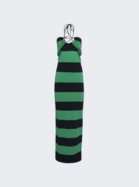 Knitted Striped Halter Dress Green And Blue