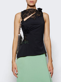 Details - Asymmetric top with lace panels - Cut-out neckline - Signature rose-knot detailing - Material: 80% Polyamide, 20% Elastane Size Information: Vendor Color Code: Brand Style: COPT975021 Designer/Brand: COPERNI