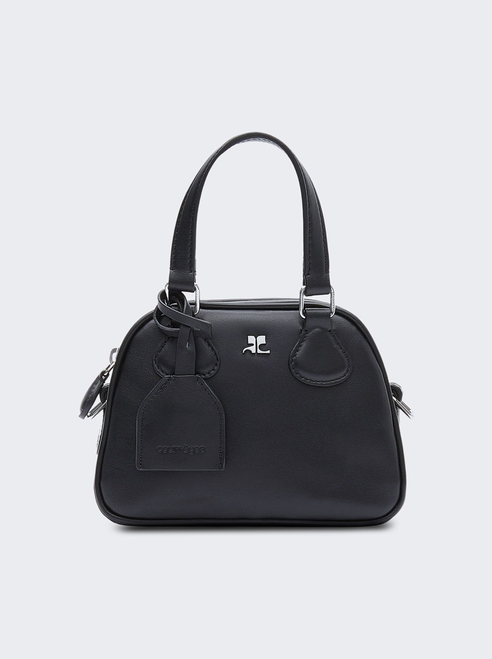 Details - Smooth leather mini bowling bag - AC logo on front - Key ring detail - Metal zipper closure - Short handles with removable and adjustable shoulder strap - Inside zipper pocket - Length: 24 cm - Height: 27.5 cm - Opening width: 29 cm - Strap length: 112 cm - 100% Calf Leather Brand Style: 324GSA132CR0065 Designer/Brand: COURReGES