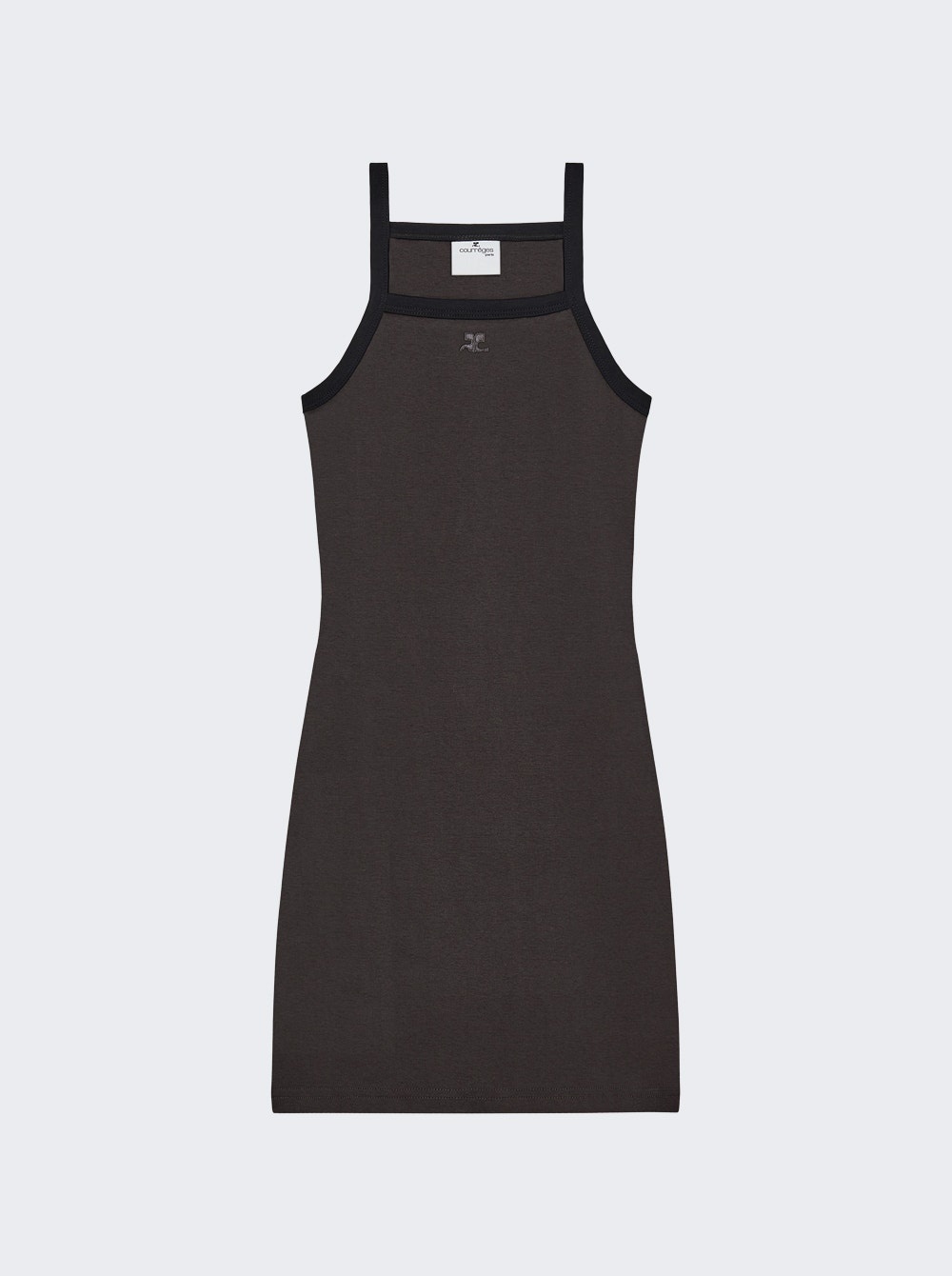 Details - Fitted silhouette - Mini length - Square neck - Logo on the front - Contrasting trim - Spaghetti straps - Straight hem - Care according to label - Material: 100% Cotton - Model is 5'9"/175cm and is wearing a size S Brand Style: 324JRO458JS0070 Designer/Brand: COURReGES