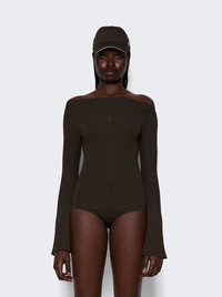 Drop Zipped Crepe Jersey Bodysuit Mud Brown