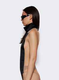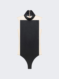 Details - Fitted silhouette - Bodysuit - Sleeveless - Concealed rear zip fastening - Mock neck - Colour block design - Care according to label - Material: 83% Triacetate, 17% Polyester - Model is 5'9"/175cm and is wearing a size S Brand Style: 125JBD114TA0007 Designer/Brand: COURReGES