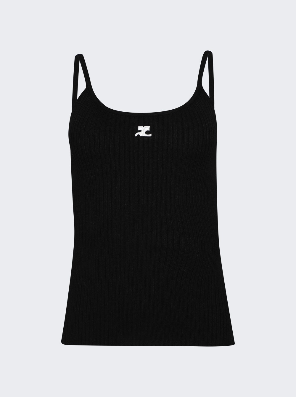 Details - Regular fit - Scoop neck - Spaghetti straps - Logo detail on the front - Ribbed knit - Straight hem - Care according to label - Material: 70% viscose, 30% polyester - Model is 5'9"/175cm and is wearing a size S Brand Style: PERMDE012FI0001 Designer/Brand: COURReGES