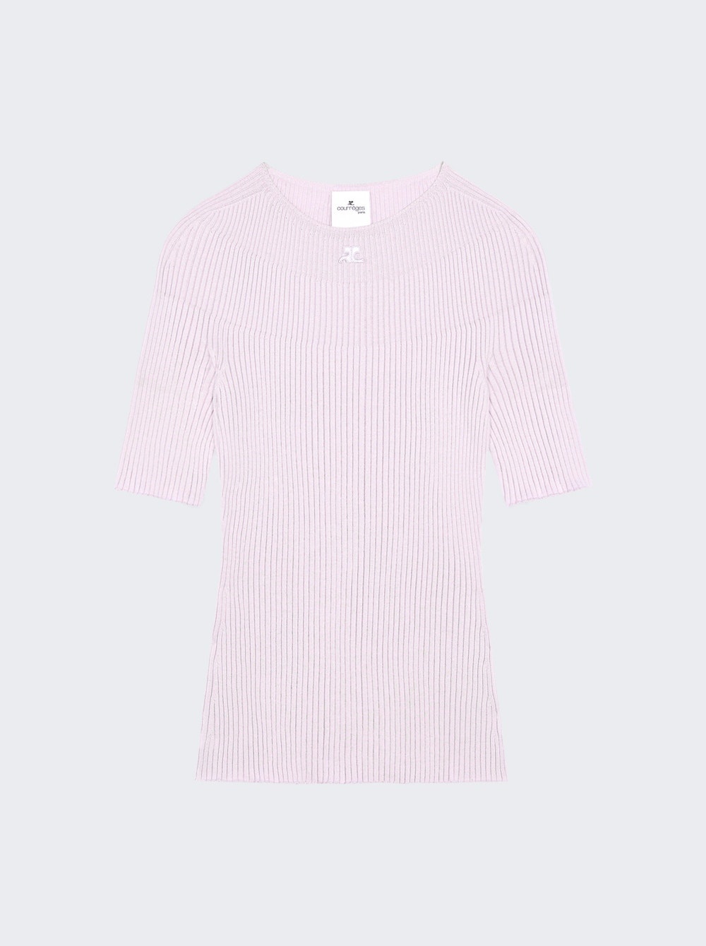 Details - Regular fit - Short sleeve - Round neck - Logo patch on the front - Ribbed knit - Straight hem - Care according to label - Material: 80% Cotton, 20% Merino - Model is 5'9"/175cm and is wearing a size S Brand Style: 124MPU130FI0049 Designer/Brand: COURReGES