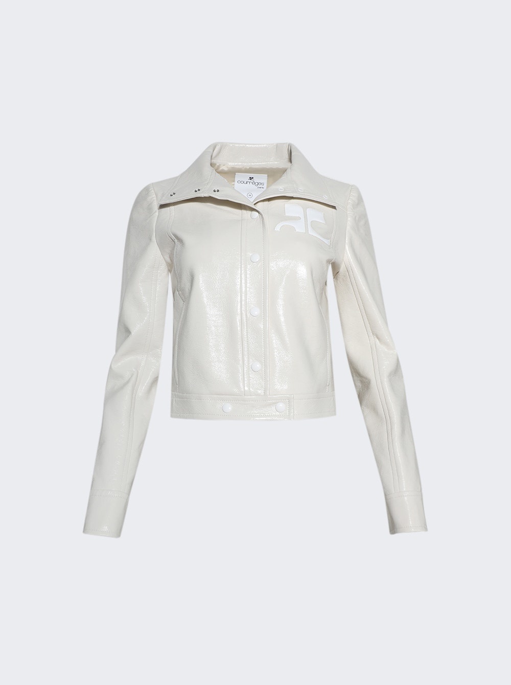 Details - Regular fit - Long sleeves - Stand up collar - Button fastening - Two side pockets - AC logo on the chest - Straight hem - Care according to label - Material: 88% cotton, 10% polyurethane, 2% elastane - Model is 5'9"/175cm and is wearing a size FR36 Brand Style: 223CBL005VY0014 Designer/Brand: COURReGES