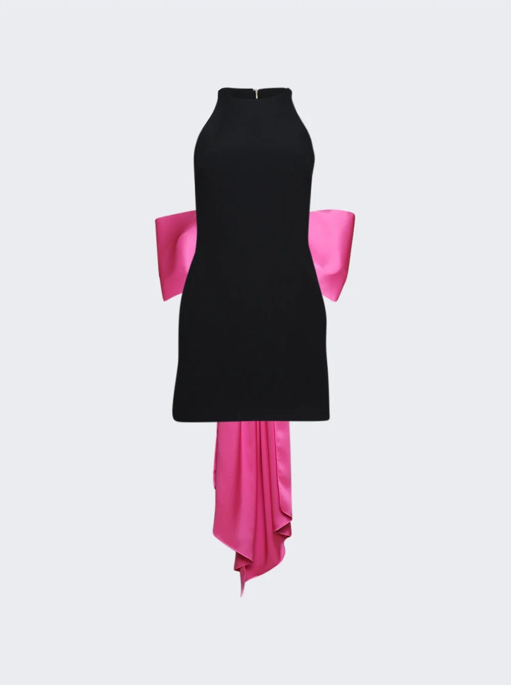 Colour Contrast Bow Detail Mini Dress Black And Fuschia