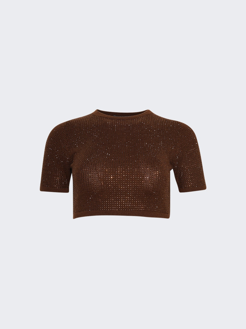 Rhinestone Embroidered Crop Top Brown
