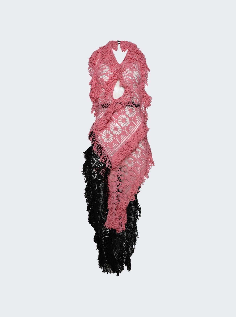 Drift asymmetric crocheted cotton halterneck midi dress