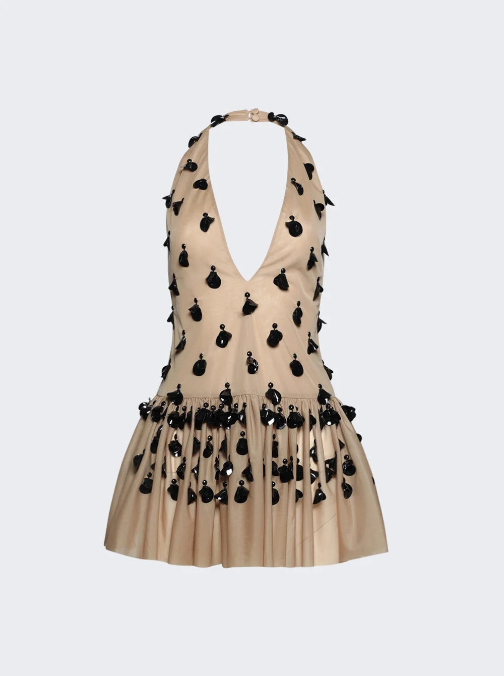 Details - Evening halter top with a plunging neckline - Open back - Sculptural peplum hem - Hand-applied sequin embellishments - Material: Polyester Size Information: Vendor Color Code: Brand Style: 25SWT03J012 Designer/Brand: DIOTIMA
