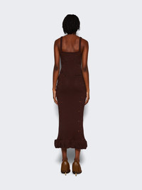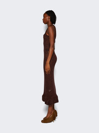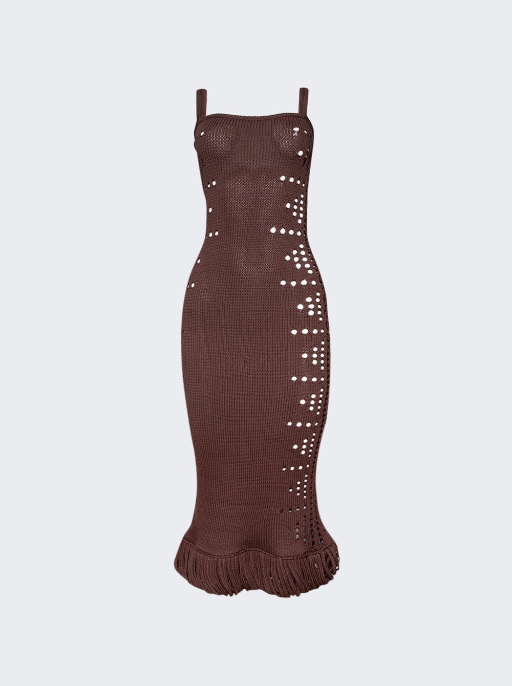 Details - Long sleeveless - Knit from chunky cotton yarn - Slim, maxi silhouette - Small, circular cut-outs along the sides - Looped fringe hem Dimensions: Model is 5'9"/175cm and is wearing a size 1 Composition: 76% Cotton, 24% Nylon Care: Care according to label Brand Style: 24SWD08 Designer/Brand: DIOTIMA