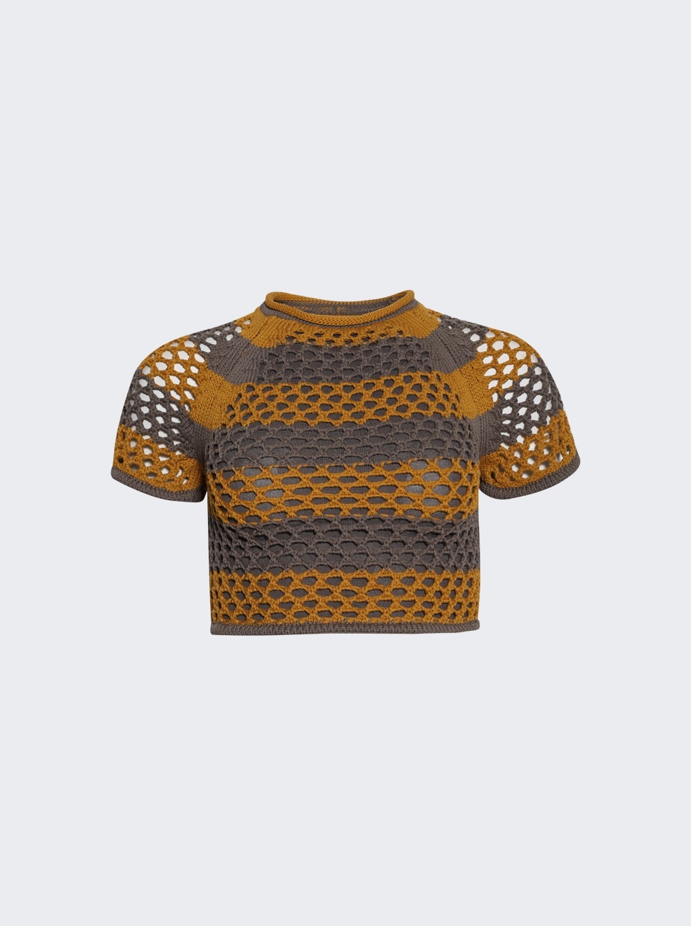 Details - Regular fit - Rolled crewneck - Short sleeves - Cropped silhouette - Pull on design - Care according to label - Material: 76% cotton, 2% nylon - Model is 5'9"/175cm and is wearing a size 1 Brand Style: 25WWT11 Designer/Brand: DIOTIMA