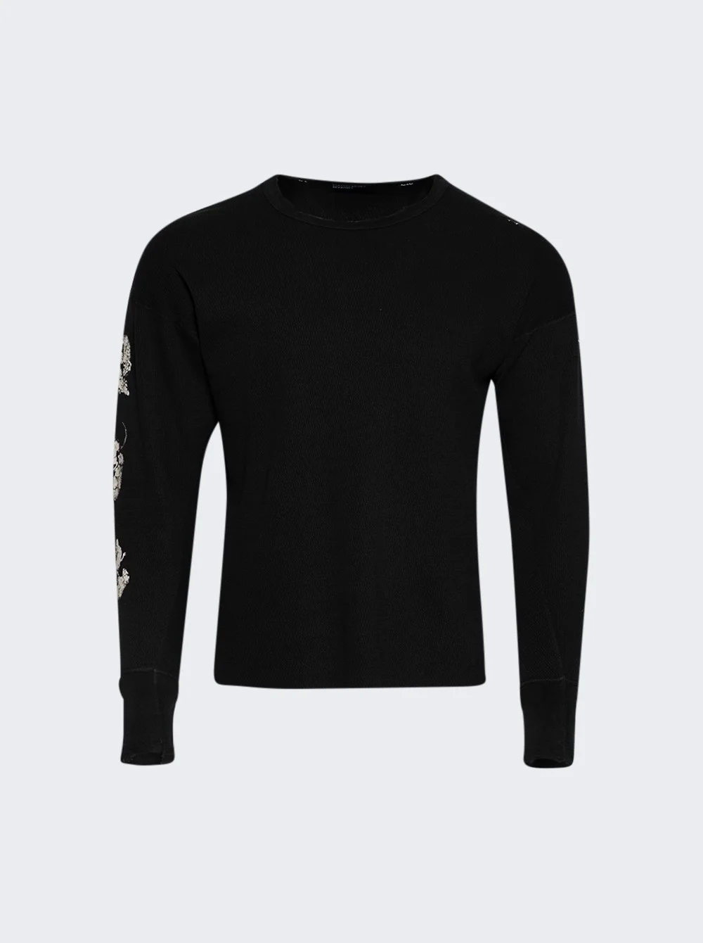 Details - Regular fit - Crewneck - Long sleeves - Overstich hem at waist - Printed artwork at sleeves - Distressed throughtout - Signature vintage wash process - Straight hem - Care according to label - Material: Japanese Military Thermal Vendor Color Code: Brand Style: 010-895 Designer/Brand: ENFANTS RICHES DEPRIMES