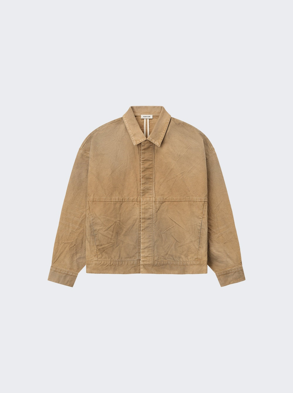Details - Relaxed fit - Cropped silhouette - Shirt collar - Side pockets - Antique metal hardware - Long sleeves - Logo label is located at the back collar - Care according to label - Material: 100% Cotton Size Information: Vendor Color Code: Brand Style: FG25FW42-423CNV Designer/Brand: FEAR OF GOD