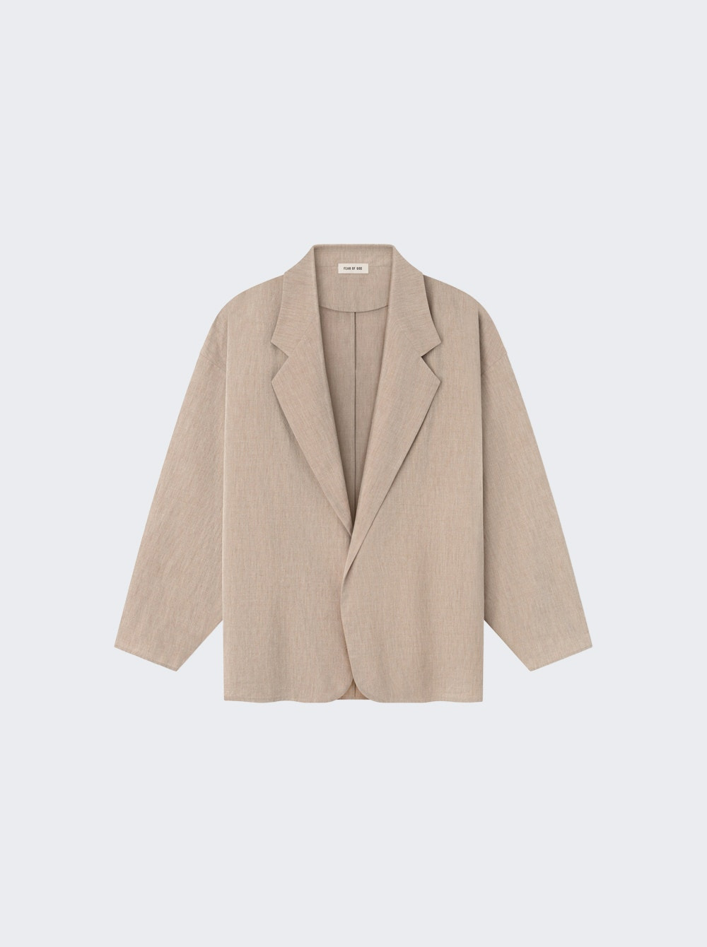 Details - Wool-cotton blend blazer - Unlined and unstructured design - Soft, tailored look - Cropped fit with a rounded silhouette - Soft shoulders - No closure - label at the back collar - Material: 54% Virgin Wool, 46% Cotton Size Information: Vendor Color Code: Brand Style: FG25FW62-625WCT Designer/Brand: FEAR OF GOD