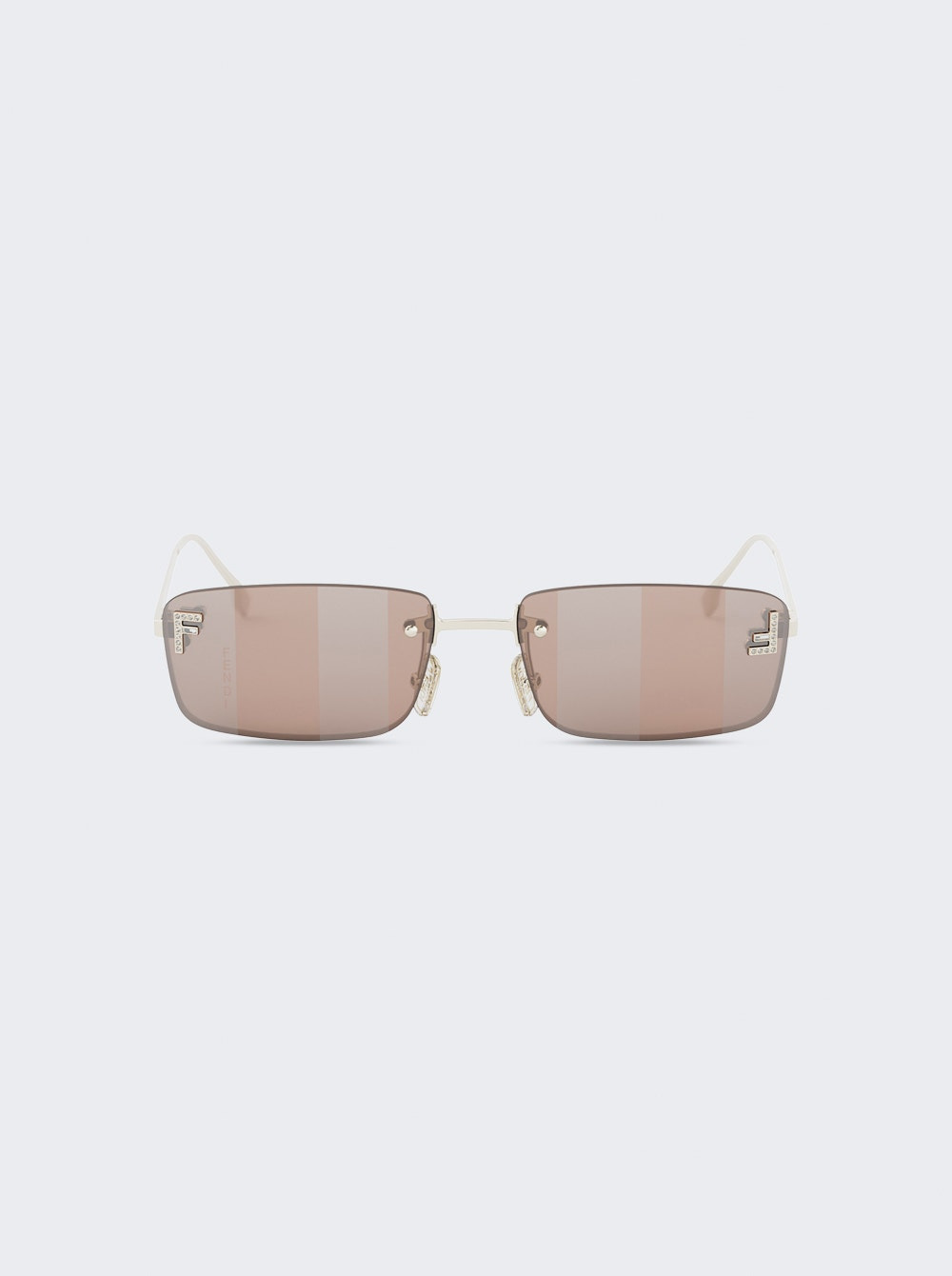 Details - Rimless sunglasses in gold-tone metal - Rust brown lenses in the signature Pequin motif - Micro F in crystals - Material: Metal Vendor Color Code: Brand Style: FE4172USW5432G Designer/Brand: FENDI