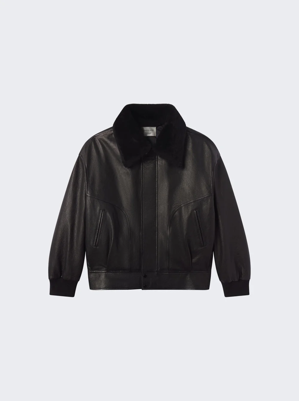 Details - Designed in collaboration with Amelia Gray - Smooth lamb leather bomber jacker - Iconic aviation shape with refined detail - Shearling collar - Side pockets - Material: 100% Lamb Leather Size Information: Vendor Color Code: Brand Style: WP26LJA014 Designer/Brand: FRAME