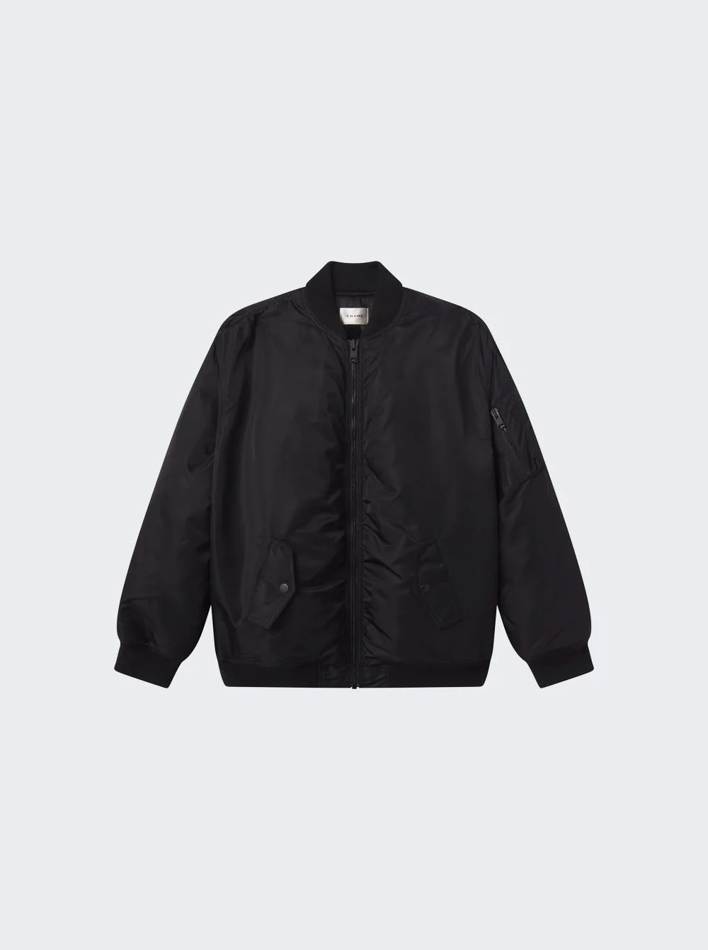 Details - Designed in collaboration with Amelia Gray - Lightweight nylon bomber jacket - Tonal details - Ruched seams that add volume and dimension - Zip closure - Two side flap pockets - Zip pocket closure on one sleeve - Ribbed cuffs and hem - Material: 100% Nylon Size Information: Vendor Color Code: Brand Style: WP26WJA012 Designer/Brand: FRAME