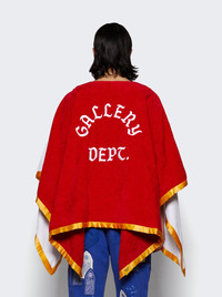 Details - Poncho crafted from recycled towels - Satin lining - Contrast white front and red back - Printed - logotype on the front, embroidered on the back. - This product may have wrinkles, marks, or scratches that are inherent characteristics and natural beauty of this recycled material. This results in differences and uniqueness to each piece. - Model is 6'1"/185cm and is wearing a size S - Main Material: 100% recycled cotton towels Brand Style: BTP-20015 Designer/Brand: GALLERY DEPT