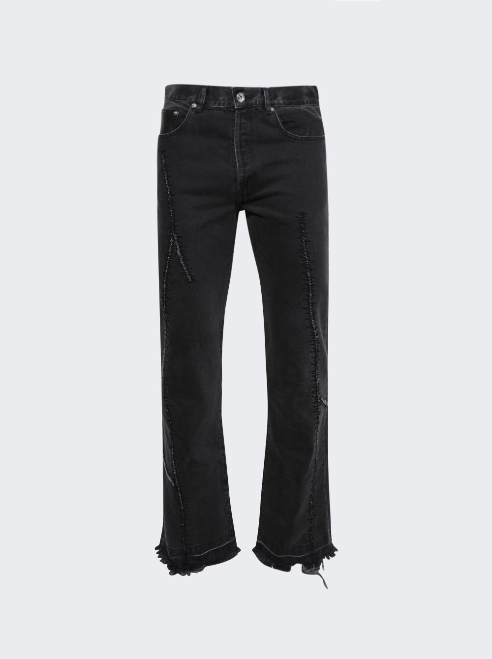 Details - Regular fit - Flare leg - Belt loops - Zip and button fastening - 4 pocket design - Raw hemline - Care according to label - Material: 100% Cotton - Model is 6'1"/185cm and is wearing a size US32 Brand Style: YKF-2032F-0350 Designer/Brand: GALLERY DEPT