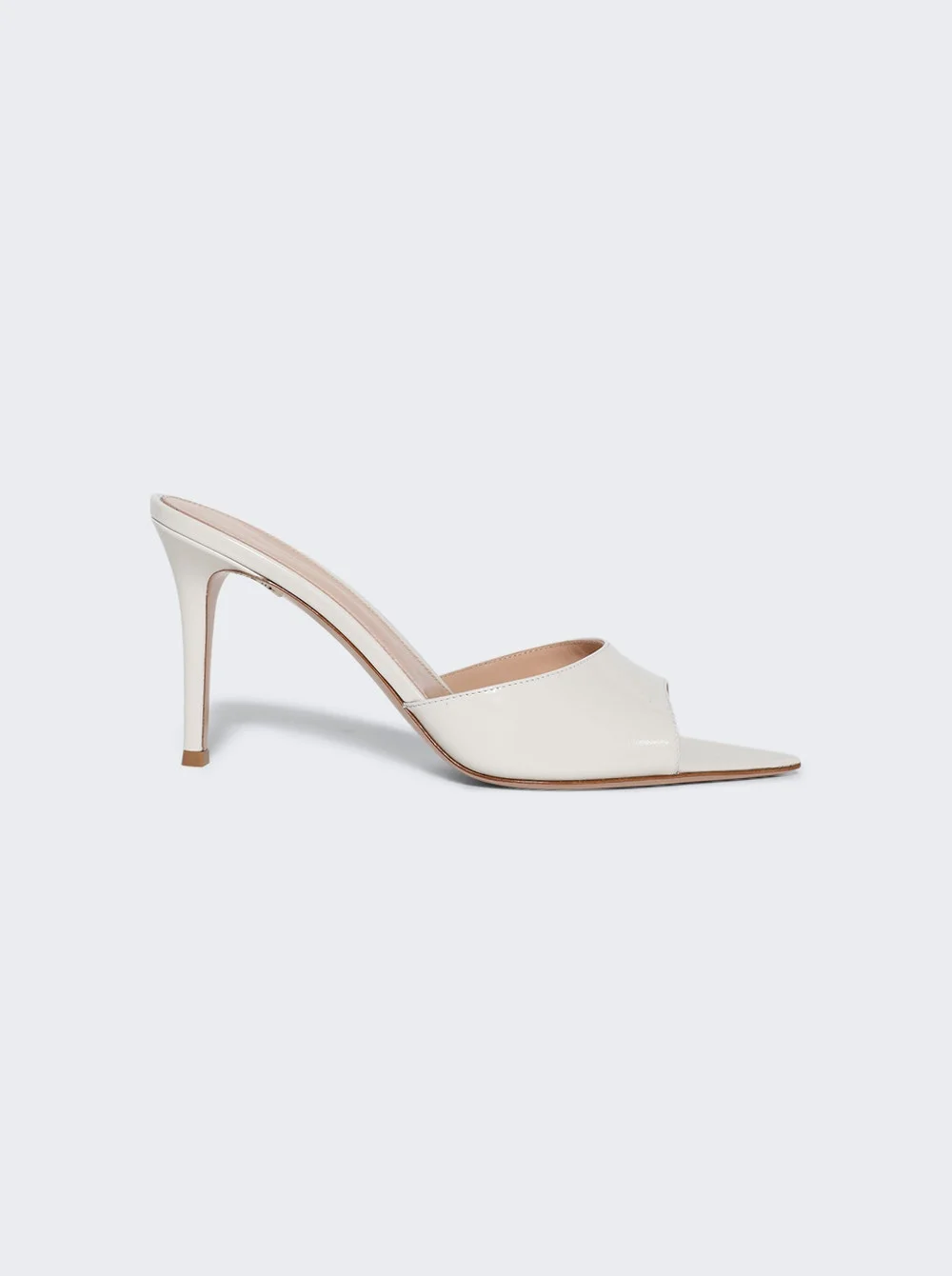 Details - Pointed toe, high heel mule sandal - Stiletto heel - Patent leather upper - Heel height: 3.3in / 85mm - Material: Leather Size Information: Vendor Color Code: Brand Style: G15130.85RIC.NUIOFFW Designer/Brand: GIANVITO ROSSI