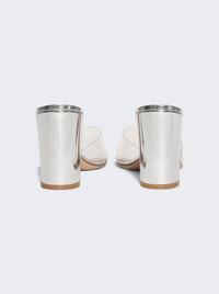 Details - Block heel mule sandals - Metallic leather and transparent upper strap - Heel height: 85mm / 3.3in - Material: Leather, TPU Size Information: Vendor Color Code: Brand Style: G10036.85RIC.GMETRAR Designer/Brand: GIANVITO ROSSI