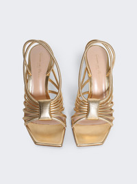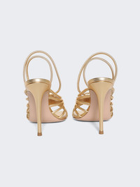 Details - Square toe - Metal-effect leather - Heel Height: 105mm - Multistrap cage upper with a padded central band and a tubular elastic back strap - Handmade in Italy. Dimensions: Listed in EU sizing. Fits true to size Composition: Upper: 100% Nappa; Sole: 100% Rubber Care: Care according to label Brand Style: G32488.15RIC.NPSMEKO Designer/Brand: GIANVITO ROSSI