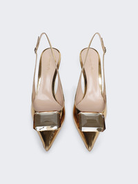 Details - Pointed toe - Stiletto heel - Adjustable slingback strap with buckle fastening - Gem stone decoration - Branded insole Dimensions: True to size. Listed in IT sizing. Composition: 100% Leather Care: Care according to label Brand Style: G95322.85RIC.METMEKO Designer/Brand: GIANVITO ROSSI