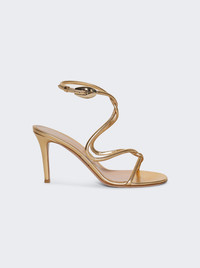 Details - Mamba snake-inspired high heel sandals - Custom made metallic snake head buckle - Metallic gold-toned leather upper and footbed - Stiletto heel - Heel height: approx. 85mm / 3.3in. - Listed in EU sizing, fits true to size Brand Style: G32575.85RIC.NIGMETR Designer/Brand: GIANVITO ROSSI