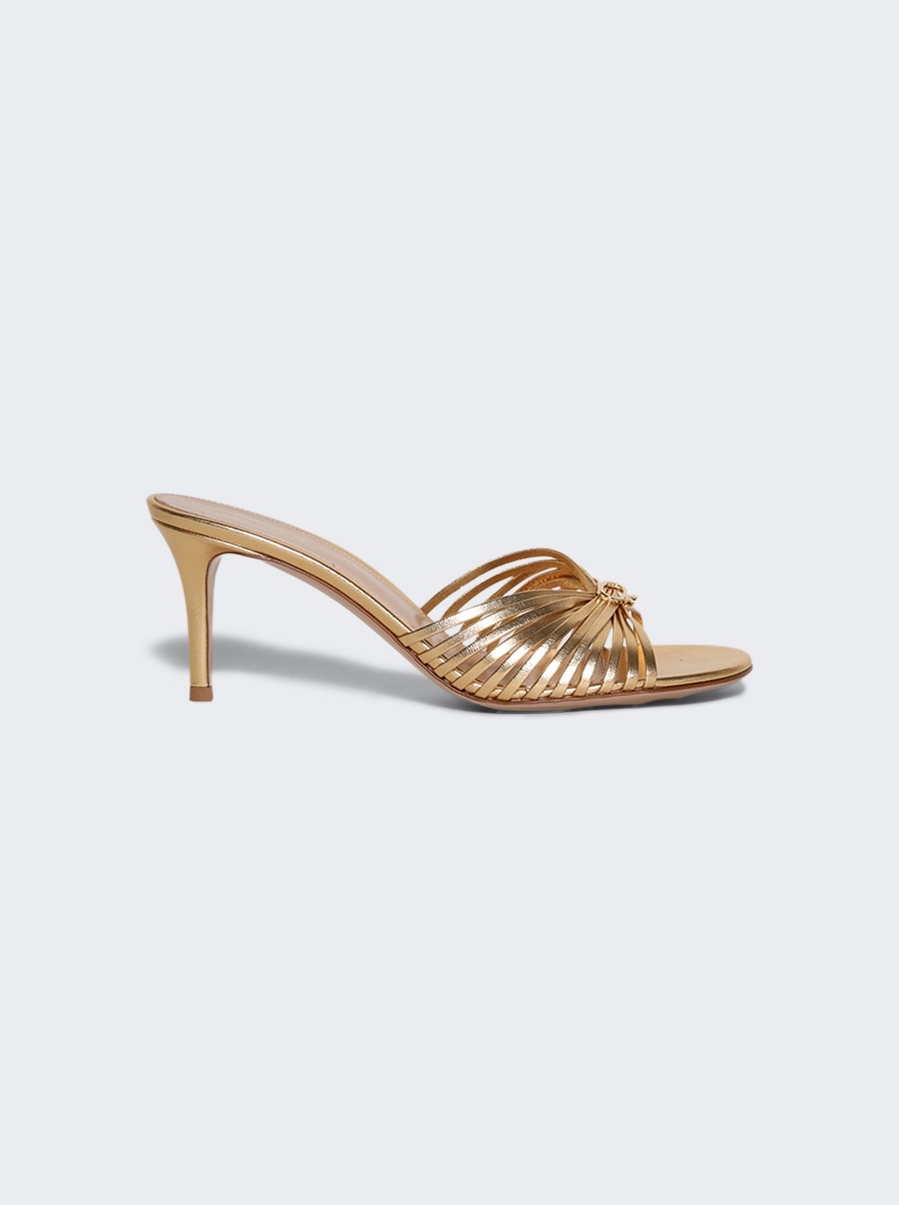 Details - Round open toe - Slip on - 70 mm heel - Solid color straps - Brand's signature metallic ribbon detail - Care according to label - Material: Leather - True to size. Listed in EU sizing. Brand Style: G10016.70RIC.NPSMEKO Designer/Brand: GIANVITO ROSSI