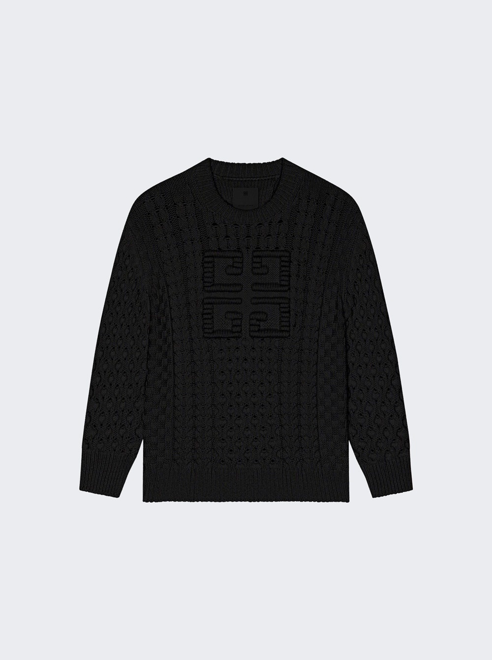 Details - Long-sleeved sweater in chunky cotton cable-knit - Crew neck - Oversized 4G emblem on the front - Ribbed collar, hem and base - Classic fit Dimensions: Model is 6'1"/185cm and is wearing a size M Composition: Fabric blend Care: Care according to label Brand Style: BM90Q24YGJ Designer/Brand: GIVENCHY