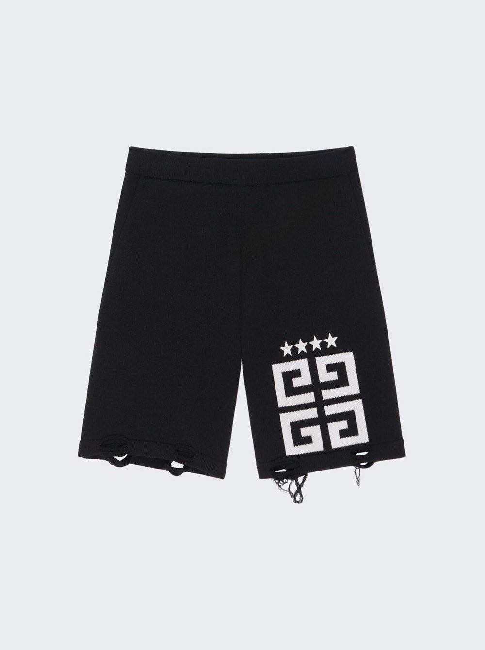 Details - Bermuda shorts in knit cotton - Elastic ribbed waist - 4G Stars embroidered on the left leg - Two side pockets - Ribbed edges with rips and used effect Dimensions: Model is 6'1"/185cm and is wearing a size M Composition: 100% cotton Care: care according to label Brand Style: BM51B64ZH6004 Designer/Brand: GIVENCHY