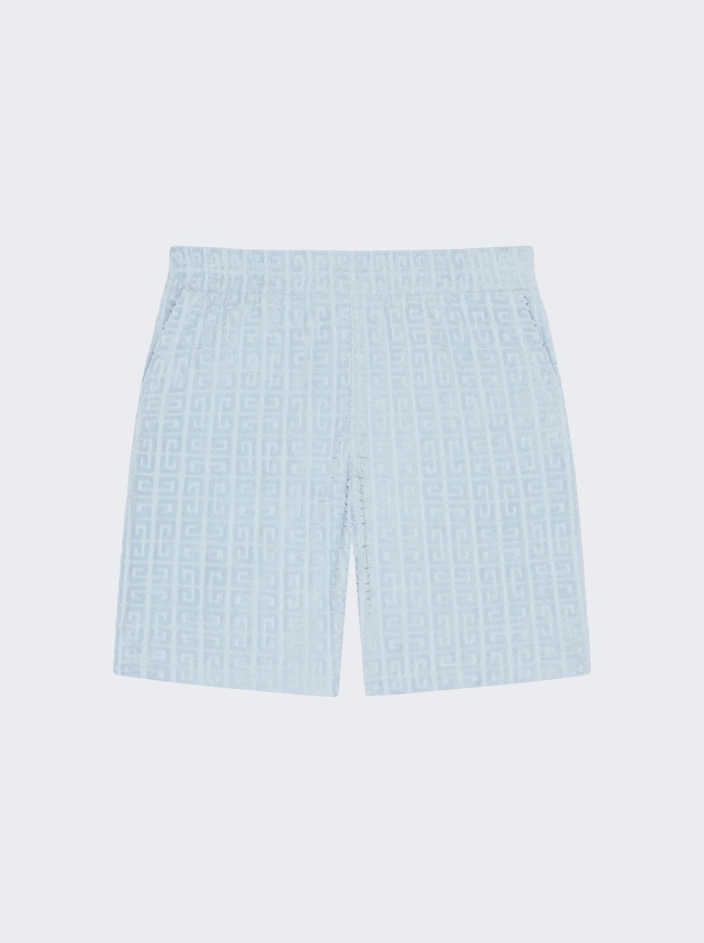 Details - Bermuda shorts in jacquard cotton toweling - Elastic waist - Raised 4G pattern all-over - Two side pockets - One back pocket Dimensions: Model is 6'1"/185cm and is wearing a size M Composition: 87% Cotton, 13% Polyamide Care: Care according to label Brand Style: BM515J3YF0450 Designer/Brand: GIVENCHY