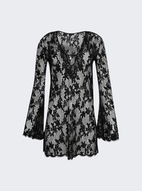 Details - Short - with long sleeves in transparent lace - Plunging V neck - Small silvery-finish 4G metal pendant - Flared sleeves - Topstitching Dimensions: Model is 5'9"/175cm and is wearing a size FR36 Composition: Fabric blend Care: Care according to label Brand Style: BW224320GC Designer/Brand: GIVENCHY