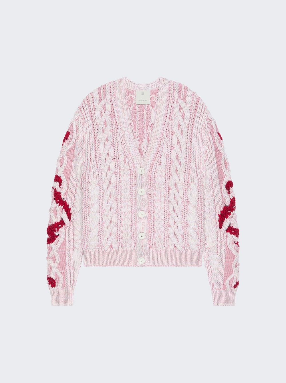 Lunar Year Snake V-neck Cardigan Ivory Pink