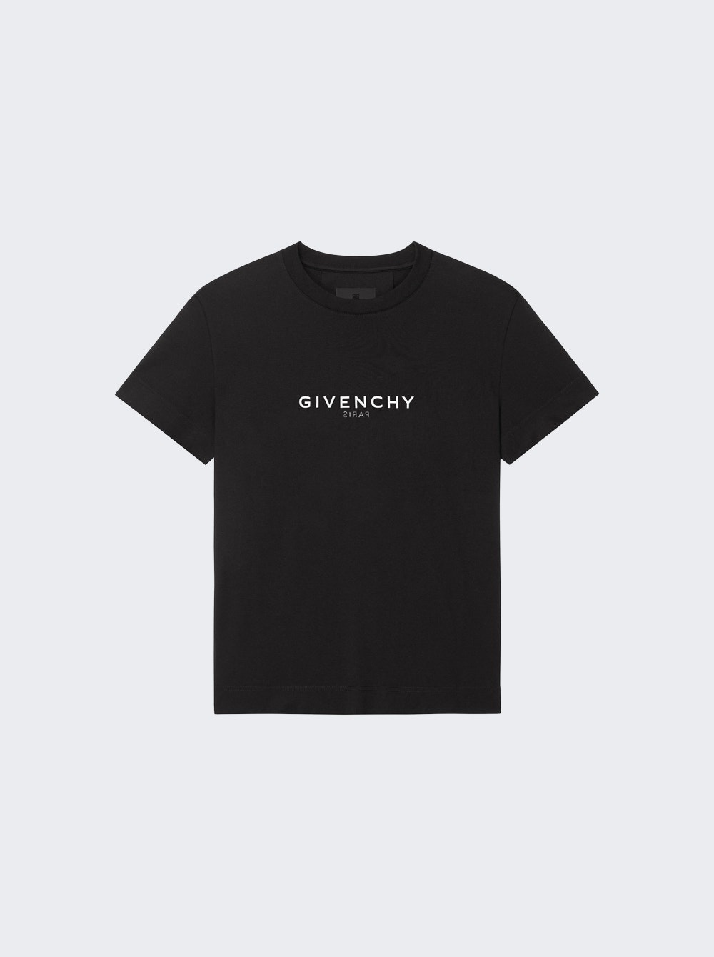 Details - Oversize fit - Short sleeves - Crew neck - Reverse print effect on the front and back - Straight hem Dimensions: Model is 6'1"/185cm and is wearing a size M Composition: 100% Cotton Care: Care according to label Brand Style: BM71533Y6B001 Designer/Brand: GIVENCHY