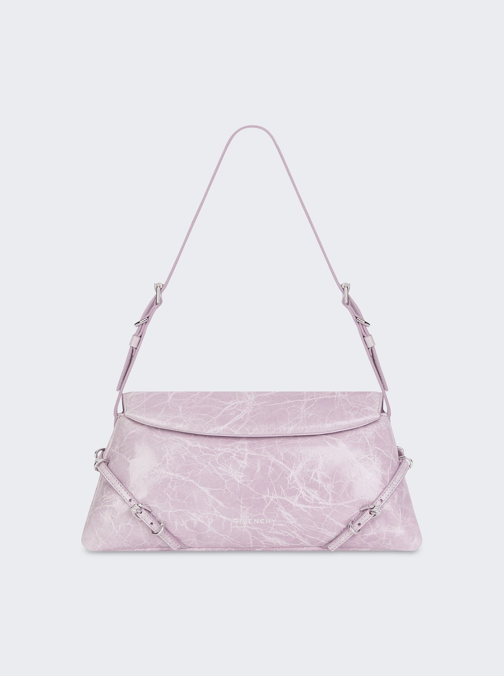 Details - Crackled patent leather shoulder bag - Flap with magnetic closure - Short adjustable and removable leather strap offering hand or shoulder carrying - GIVENCHY signature embossed on the front of the bag and on the top of the strap - GIVENCHY engraved metal buckles - Silvery-finish metal details - Two compartments with a central separation and one card slot inside - Dimensions: 12.6 in x 5.9 in x 3.7 in - Strap length: Min: 8.7 in; Max: 13 in - Material: 100% Calf Leather Brand Style: BB5104B279 Designer/Brand: GIVENCHY