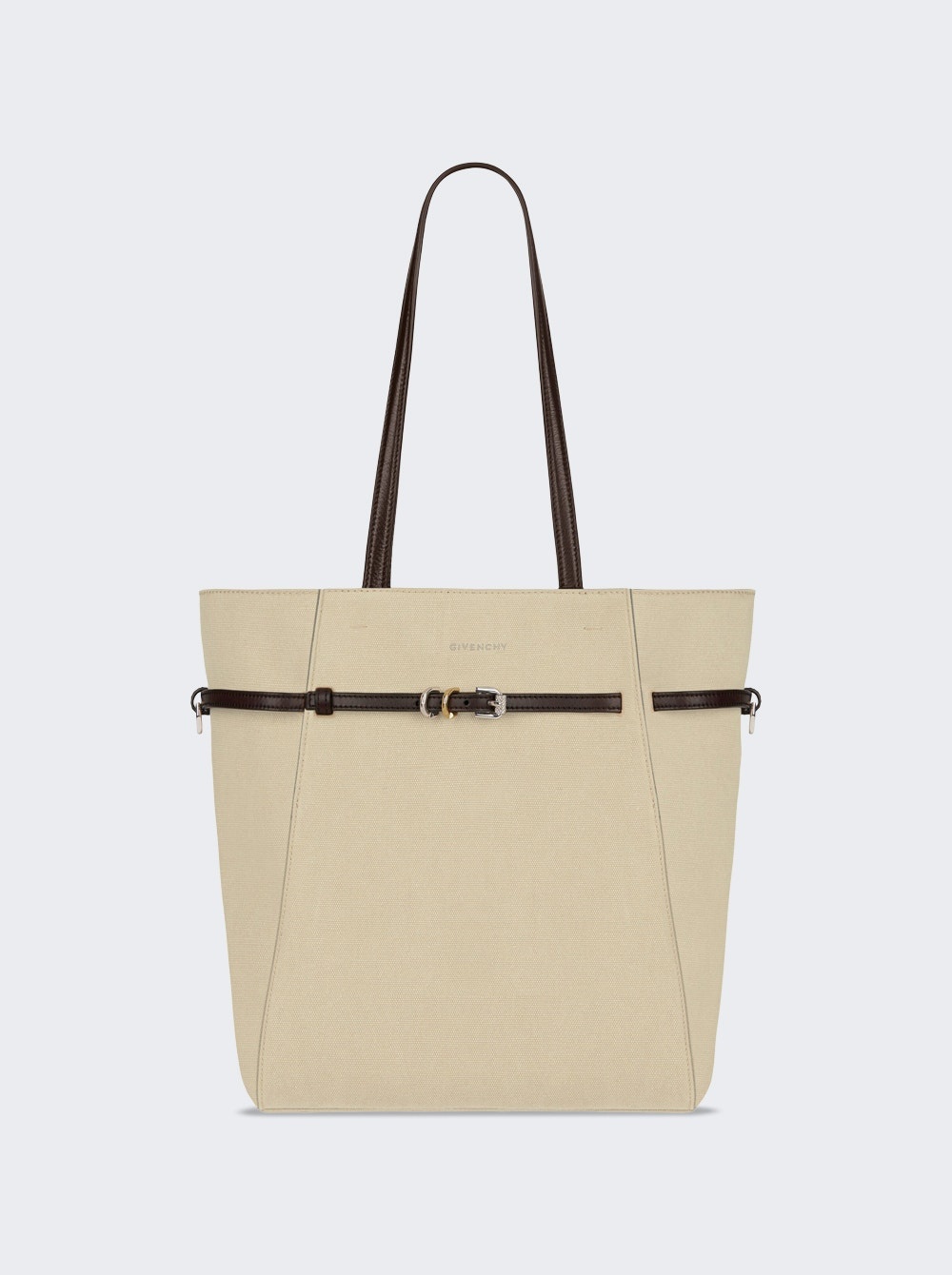 Details - Small tote bag in tumbled calfskin leather - Long leather handles offering shoulder or hand carrying - GIVENCHY signature embossed on the front of the bag - Adjustable leather strap with GIVENCHY engraved metal buckles on the front - Golden and silvery-finish metal details - One main compartment - Suede lining Dimensions: 11.81 x 12.2 x 4.33 inches; Strap drop: 9.8 inches Composition: 100% Calf Leather Care: Care according to label Brand Style: BB50ZPB233259 Designer/Brand: GIVENCHY