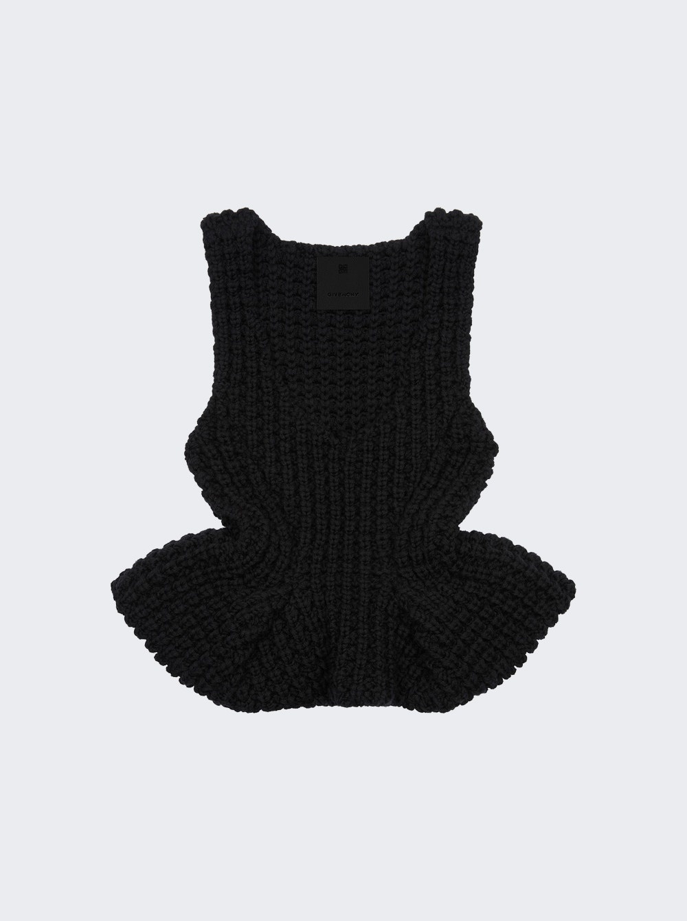 Details - Peplum top in waffle wool - Plunging U neckline - GIVENCHY label embroidered on the upper back - Slim fit - 100% Wool - Model is 5'9"/175cm and is wearing a size S Brand Style: BW90T44ZP6 Designer/Brand: GIVENCHY