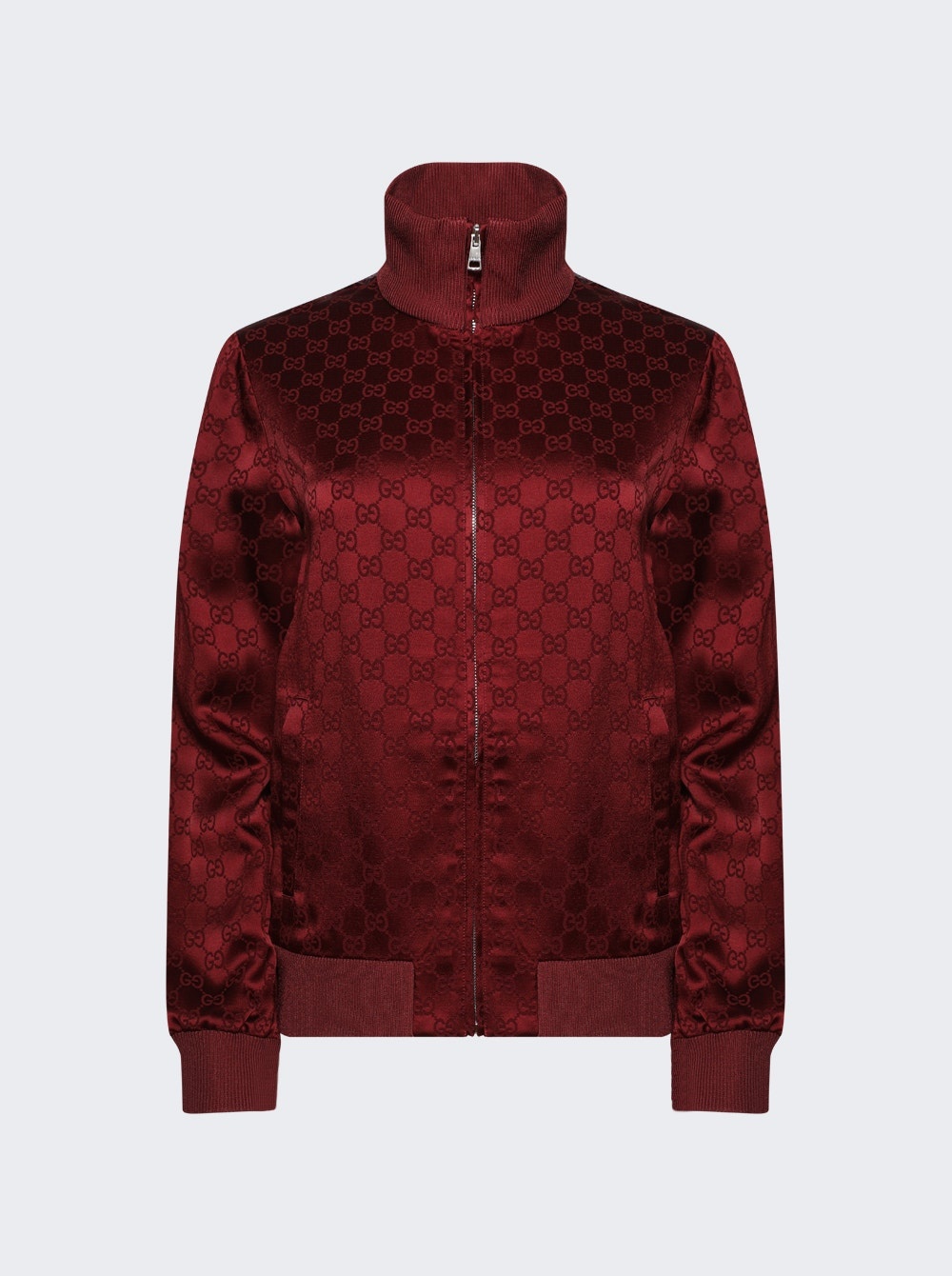 Details - GG viscose jacquard jacket - Stand collar - Dropped shoulder - Two side pockets - Rib trim - Zip closure - Regular fit - Model is 5'9"/175cm and is wearing a size S - Fabric: 55% Viscose, 45% Acetate Brand Style: 792383 XJGSE Designer/Brand: GUCCI