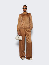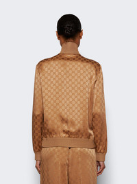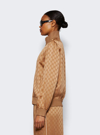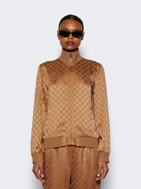 Details - Camel GG viscose jacquard jacket - Contrast white piping at the sides - Stand collar - Dropped shoulder - Two side pockets - Rib trim - Zip closure - Regular fit - Model is 5'9"/175cm and is wearing a size S - Fabric: 55% Viscose, 45% Acetate Brand Style: 792383 XJGSE Designer/Brand: GUCCI