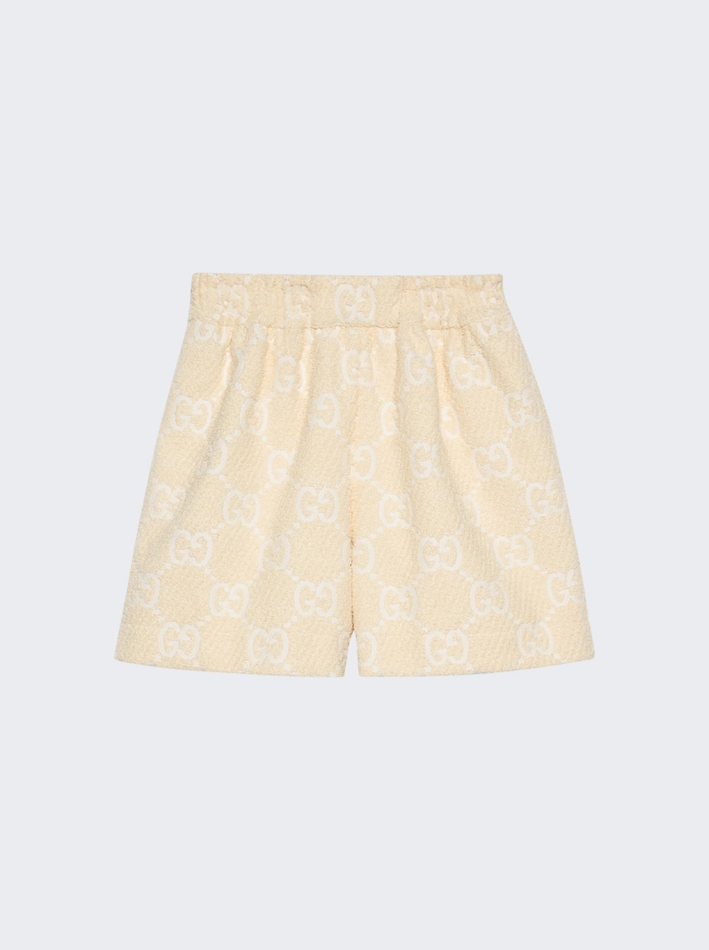 Details - Ivory GG terrycloth - 'Gucci Made In Italy' embroidered label - Elastic waistband with drawstring - Two side pockets - Two back pockets Dimensions: Model is 6'1"/185cm and is wearing a size EU48 Composition: 42% Cotton, 32% Polyamide, 26% Polyester Care: Care according to label Brand Style: 782616 ZAPYQ Designer/Brand: GUCCI