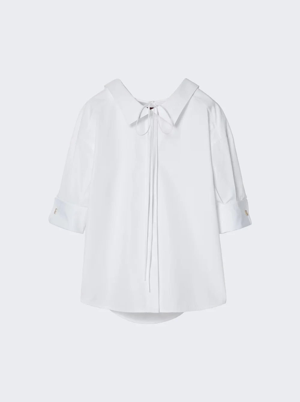 Details - Relaxed fit - White heavy cotton poplin - Embossed Gucci logo at the neck - Gold-toned Gucci lettering detail at the cuffs - V-neck with self-tie - Three-quarter sleeves - Button closure - Cut for a slightly oversize fit Dimensions: Model is 5'9"/175cm and is wearing a size IT40 Composition: 100% Cotton Care: Care according to label Brand Style: 781712 ZAQMO Designer/Brand: GUCCI