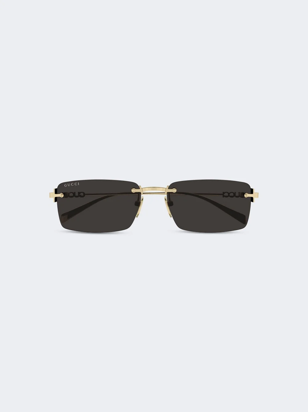 Details - Rimless rectangular sunglasses - Shiny gold nose bride and temples - Cut-out Gucci logo on the temples - Solid lenses - 100% UVA/UVB protection - Frame total width/bridge/temple (in mm): 135-15-140 - Material: Metal Vendor Color Code: Brand Style: GG1941S-001 56 Sunglass M Designer/Brand: GUCCI