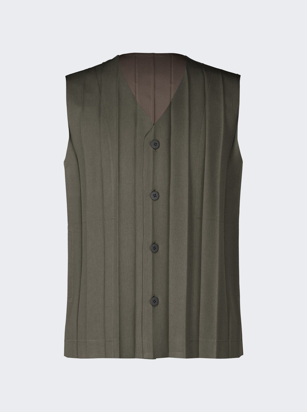 Details - Regular fit - Sleevelees - V neck - Button closure - Wide accordion pleats - Pockets on both sides - Straight hen - Care according to label - Material: 100% polyester Size Information: Vendor Color Code: Brand Style: HP56FE261 Designer/Brand: HOMME PLISSE ISSEY MIYAKE
