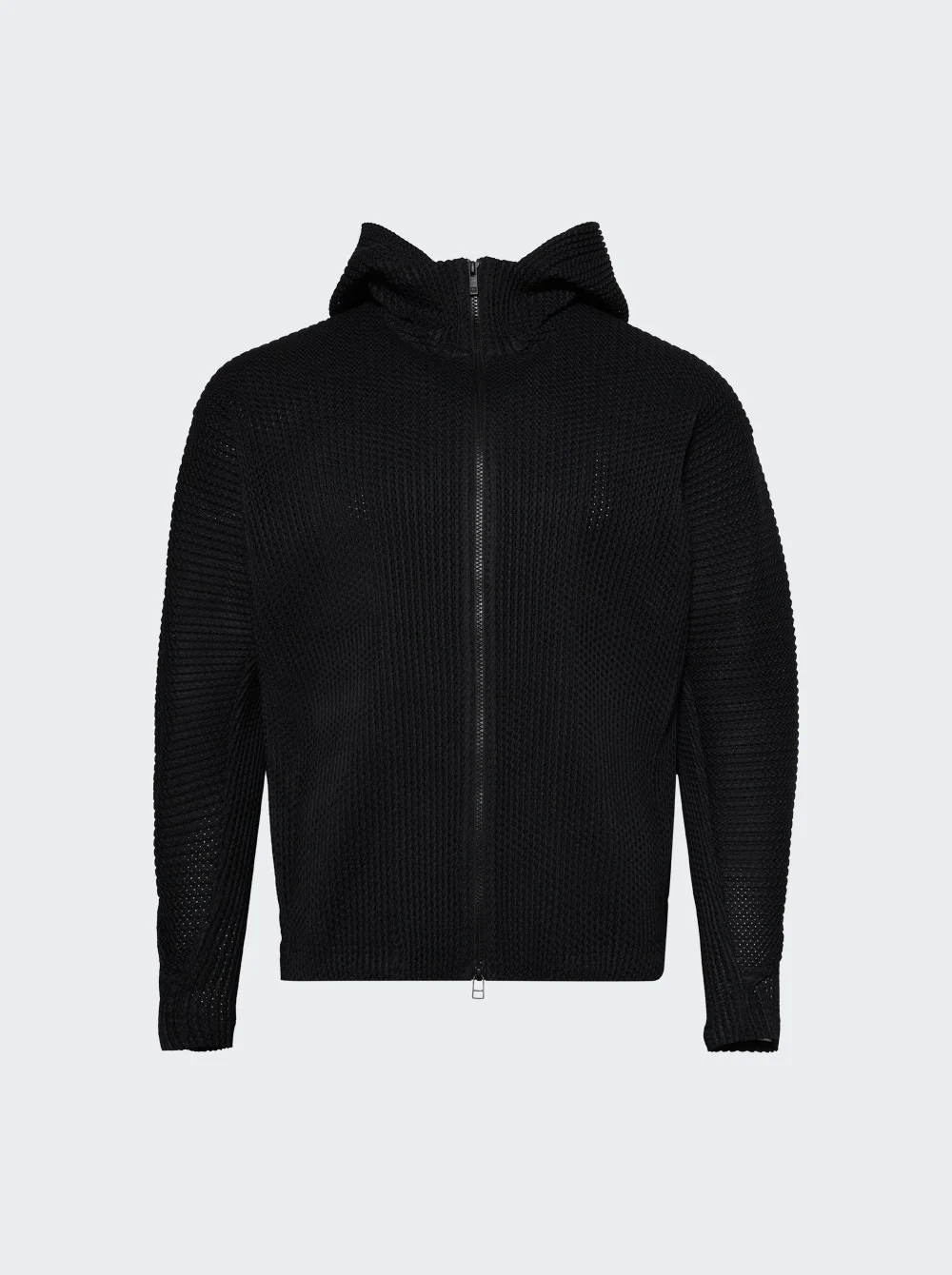 Details - Zipped wickerwork hoodie - Signature pleating with a woven textured layered - Two-way zip closure - Side pockets - High neck - Material: 100% Polyester Size Information: Vendor Color Code: Brand Style: HP58JL250 Designer/Brand: HOMME PLISSE ISSEY MIYAKE